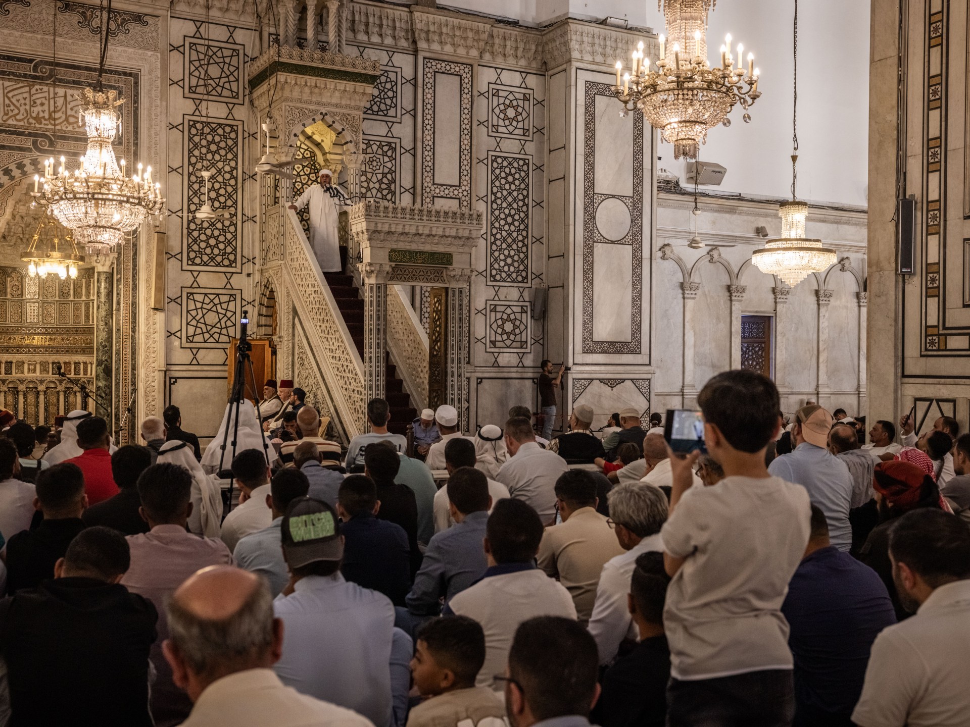 ويأتي هذا الإعلان إحياء لتقليد “مجالس السماع” التي كانت تقام بالمسجد الأموي، كتقليد إسلامي قديم، حيث يقوم الشيخ بقراءة كتاب على مسامع طلابه، ومن ثم يجيزهم برواية هذا الكتاب، في مشهد يعكس اهتمام الإدارة السورية الجديدة بإحياء التراث الإسلامي وتقديمه للجمهور.