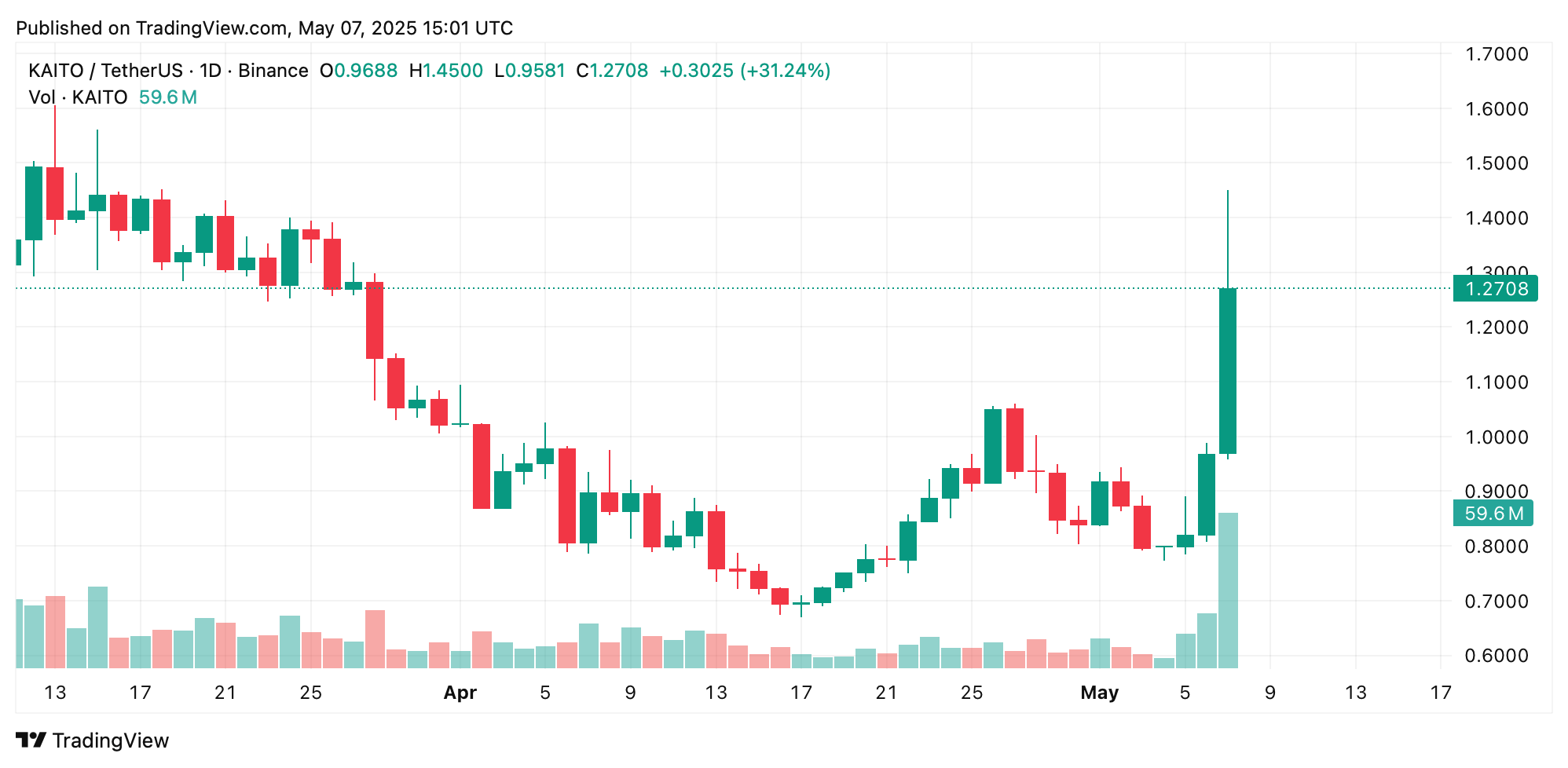 Kaito/ USDT عبر binance في 7 مايو.