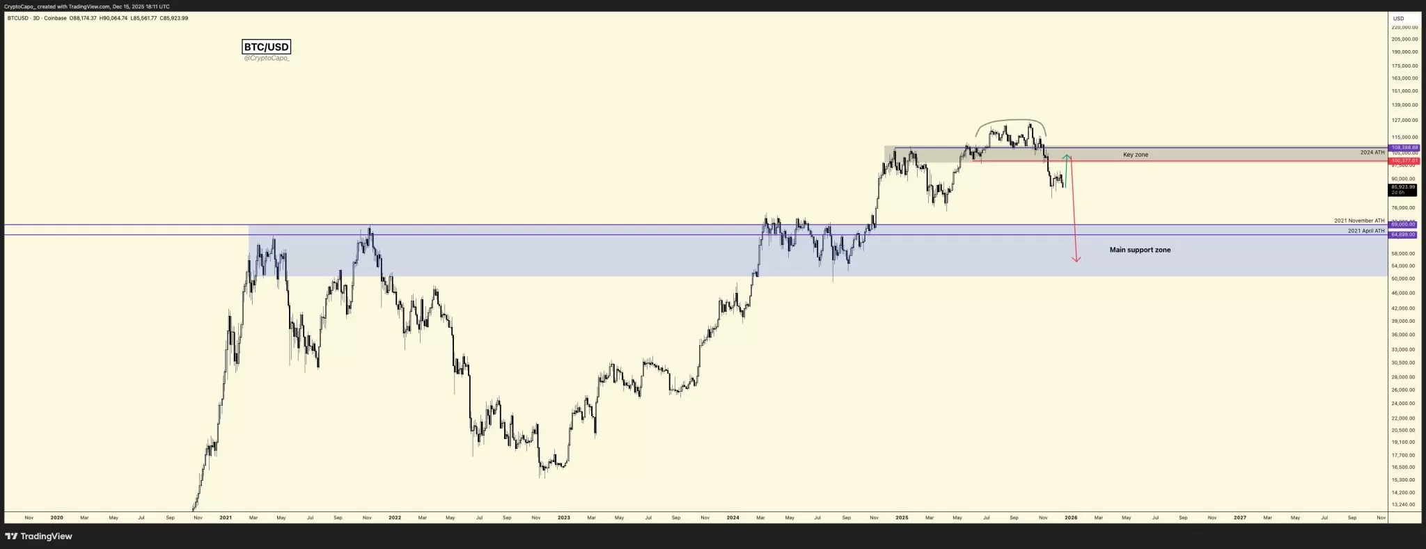 - Il Capo of Crypto: يتوقع Il Capo، وهو محلل معروف في عالم العملات المشفرة، أن يرتفع سعر البيتكوين أولاً فوق 100000 دولار، ثم يتراجع بعد ذلك إلى ما يسميه نقطة الدعم الرئيسية، بين 50000 دولار و69000 دولار.