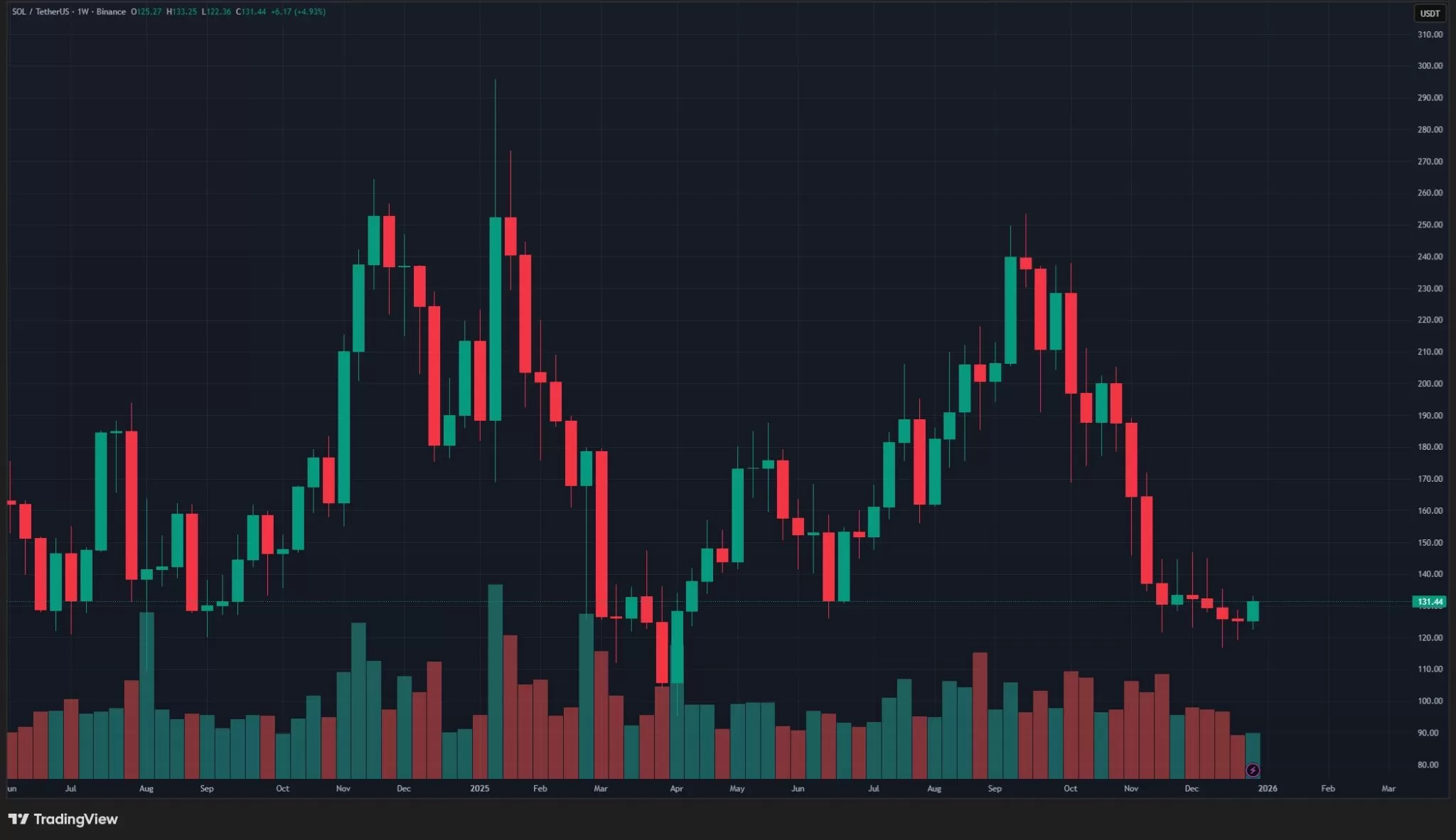 من ناحية أخرى، قدمت Solana (SOL)، وهي عملة بديلة قوية أخرى، توقعات مخيبة للآمال لمستثمريها في عام 2025. وبعد أن وصلت إلى مستوى قياسي في بداية عام 2025، شهد سعر SOL انخفاضات حادة للغاية على مدار العام، خاصة خلال فترة تراجع عملة البيتكوين، وأنهى العام بانخفاض بنسبة 38٪.