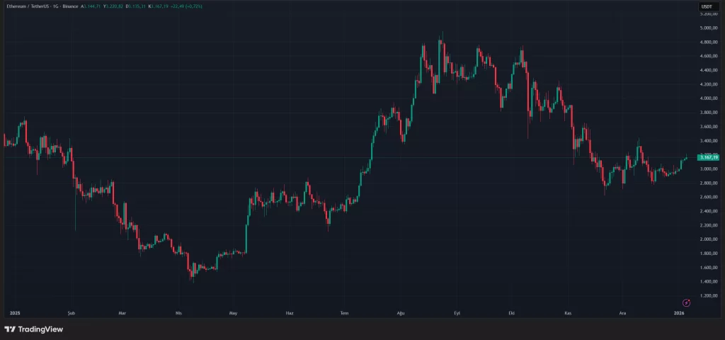ومن ناحية العملات البديلة، كانت التوقعات أكثر سلبية مقارنةً بالبيتكوين. تمكنت إيثريوم (ETH)، أكبر عملة بديلة، من كسر أعلى سعر قياسي لها على الإطلاق في أغسطس عند 4953 دولارًا، لكنها تراجعت بسرعة من هذا المستوى وأنهت العام بخسارة بنسبة 10٪. إن ضغط الشراء الذي ظهر خلال العام، بقيادة المحلل ذو الخبرة توم لي وبيتمين، اللذين اشتريا كميات كبيرة جدًا من إيثريوم، بالإضافة إلى صناديق الاستثمار المتداولة المعتمدة في إيثريوم، لم يتمكن من منع انخفاض الأسعار.
