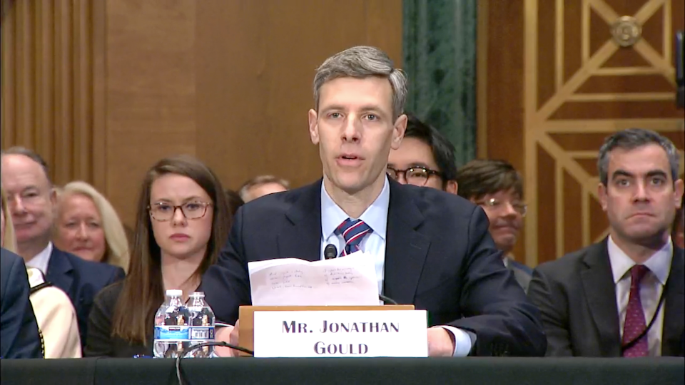 جوناثان جولد يتحدث في جلسة استماع للترشيح أمام اللجنة المصرفية بمجلس الشيوخ في مارس. مصدر: اللجنة المصرفية بمجلس الشيوخ