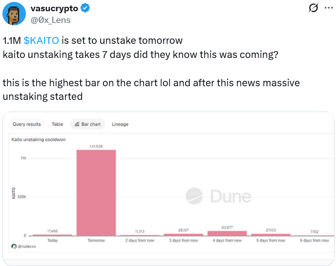 وفي غضون ساعة من نشر Bier، قالت Kaito إنها ستوقف منتجها “Yaps” الذي يكافئ المستخدمين على النشر على X، مما أدى إلى انخفاض كبير في سعره. كايتو (كايتو) رمز.