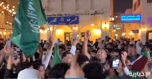 عرضت قناة «الإخبارية» فيديو لبعض الجماهير السعودية تهتف دعمًا للمنتخب الوطني في سوق واقف في العاصمة القطرية، الدوحة.