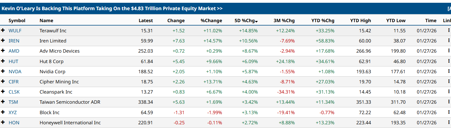 سجلت أسهم العديد من شركات التعدين الكبرى مكاسب مضاعفة خلال الـ 24 ساعة الماضية. وارتفع سهم TeraWulf بنحو 11%، وارتفع سهم Iren Limited بنحو 14%، وارتفع سهم Cipher Mining بنحو 13%، وفقًا لبيانات من Barchart.