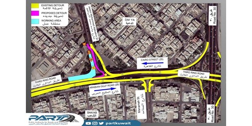 أعلنت الهيئة العامة للطرق والنقل البري، أنها بالتعاون مع الإدارة العامة للمرور ستقوم بافتتاح تحويلة مرورية لمخرج شارع جاسم محمد الإبراهيم على طريق الدائري الثالث بمنطقة الدعية لعمل الطرق النهائية والخدمات بالمنطقة، وذلك من فجر اليوم الجمعة 26 يناير.
