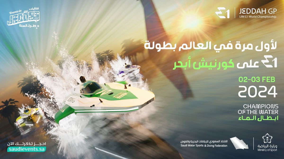 تستضيف المملكة أول بطولة عالمية لسباق القوارب الكهربائية E1، على كورنيش أبحر بجدة خلال الفترة من 2 – 3 فبراير، على أن تنتهي البطولة العالمية في هونغ كونغ نوفمبر المقبل، عقب مرور البطولة على خمس مدن عالمية.