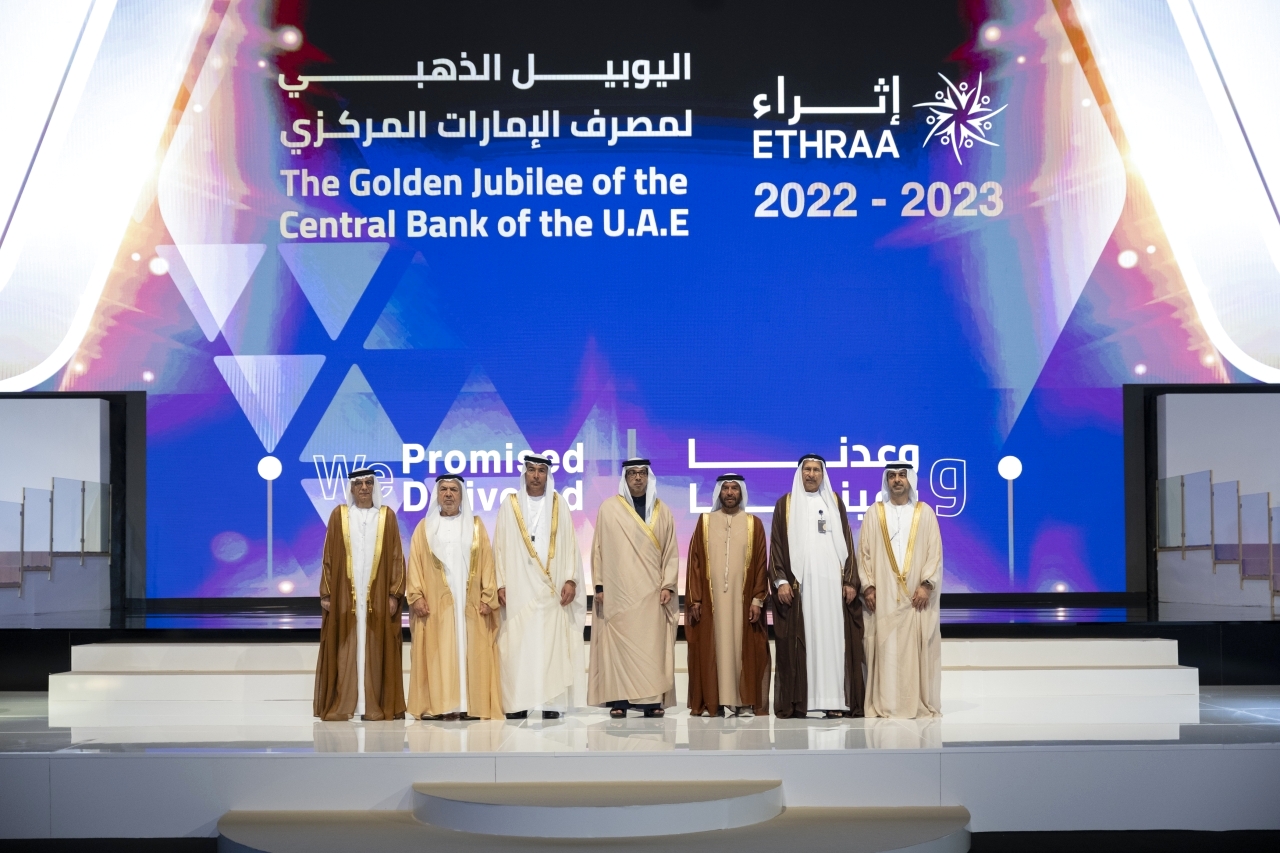 وجرى خلال الاحتفال ـ الذي أقيم في مركز أبوظبي الوطني للمعارض بحضور سمو الشيخ سرور بن محمد آل نهيان ومعالي الشيخ عبدالله بن محمد آل حامد رئيس المكتب الوطني للإعلام وخالد محمد بالعمى محافظ مصرف الإمارات العربية المتحدة المركزي وعدد من كبار المسؤولين ـ عرض مسيرة التقدم والتطور الحافلة التي شهدها المصرف على مدى 50 عاماً وأسهم خلالها في تعزيز الاستقرار المالي والنقدي ودفع عجلة النمو الاقتصادي لدولة الإمارات وتحفيزه.. إضافة إلى إطلاق حزمة من المشاريع الابتكارية التي تنفذها الشركات التابعة للمصرف المركزي ضمن برنامج البنية التحتية المالية لتسريع التحول الرقمي في القطاع المالي.