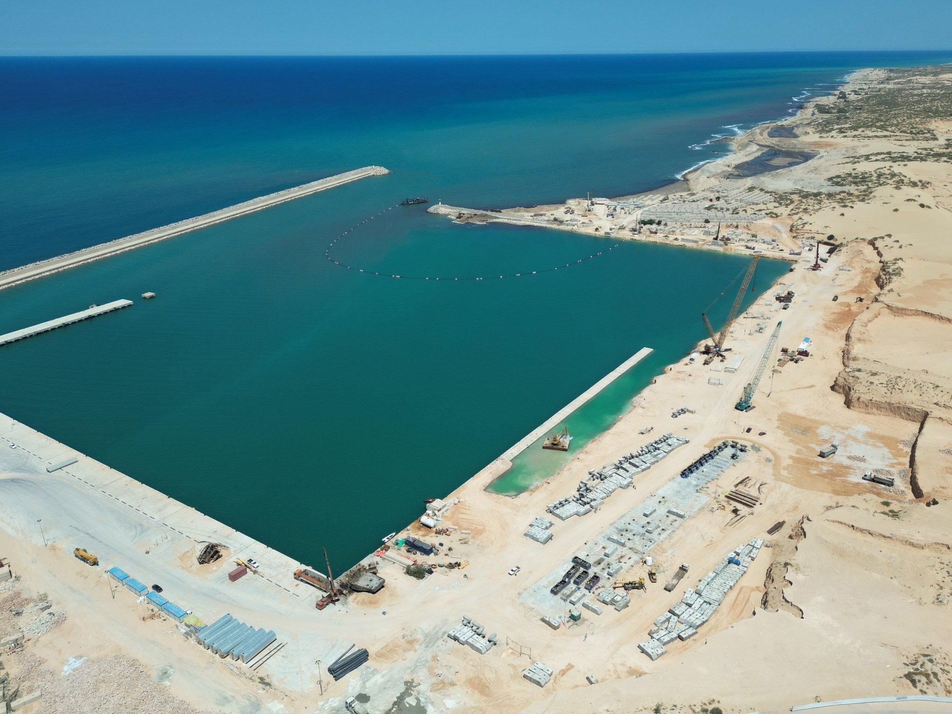 - المرحلة الأولى: تم خلالها تنظيف وتشغيل الميناء الحالي، وقد اكتملت أعمالها بالكامل.