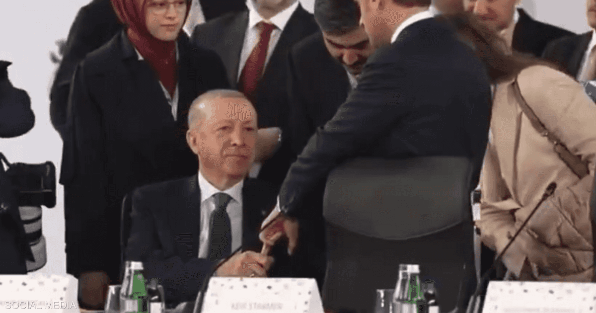 وأظهرت الكاميرات الموقف المحرج، الذي تعرض له ماكرون، بعد مصافحته أردوغان، حيث تعمد الأخير إمساك إصبع الرئيس الفرنسي لفترة طويلة.