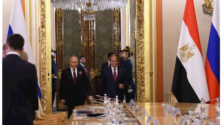 من ناحيته، وجه الرئيس السيسي التهنئة للرئيس الروسي والشعب الروسي بمناسبة عيد النصر، مشيدًا بعلاقات مصر الاستراتيجية مع روسيا، التي تستند إلى اتفاقية الشراكة الاستراتيجية الشاملة المبرمة بين البلدين عام ٢٠١٨، معرباً عن التقدير للزخم الذي تشهده العلاقات الثنائية بين البلدين في مختلف المجالات، بما في ذلك إنشاء المنطقة الصناعية الروسية في المنطقة الاقتصادية لقناة السويس، وإنشاء محطة الضبعة لتوليد الكهرباء بالطاقة النووية، وأعرب الرئيسان عن تطلعهما إلى نجاح اللجنة المشتركة بين البلدين خلال شهر مايو الجاري، والتي سوف تتناول سبل تعزيز العلاقات الثنائية في كافة المجالات ذات الاهتمام المشترك.