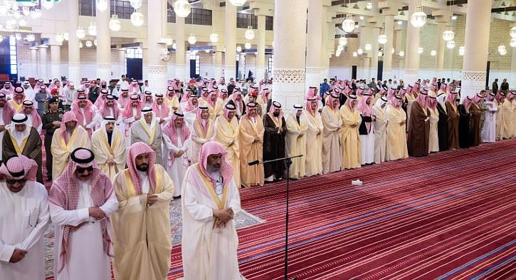 وأدى الصلاة مع سموه، صاحب السمو الملكي الأمير تركي بن فيصل بن عبدالعزيز، وصاحب السمو الملكي الأمير سعود بن سعد بن عبدالعزيز، وصاحب السمو الملكي الأمير منصور بن سعود بن عبدالعزيز، وصاحب السمو الأمير تركي بن عبدالله بن عبدالرحمن، وصاحب السمو الأمير خالد بن مساعد بن عبدالرحمن، وصاحب السمو الأمير تركي بن محمد بن عبدالعزيز بن تركي، وصاحب السمو الملكي الأمير خالد بن بندر بن عبدالعزيز مستشار خادم الحرمين الشريفين، وصاحب السمو الملكي الأمير متعب بن عبدالله بن عبدالعزيز، وصاحب السمو الأمير الدكتور سعود بن سلمان بن محمد آل سعود.