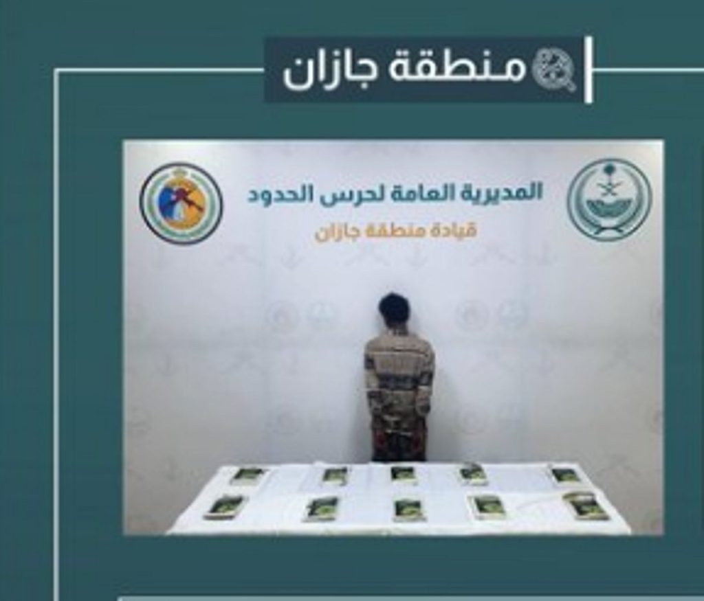 أعلنت الدوريات البرية لحرس الحدود في قطاع العارضة بمنطقة جازان القبض على مخالف لنظام أمن الحدود من الجنسية الإثيوبية، لتهريبه (11) كيلوجراما من مادة الحشيش المخدر.