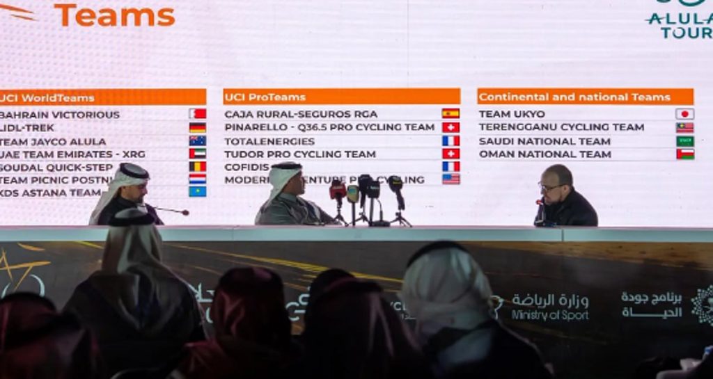 وجاء هذا الإعلان خلال المؤتمر الصحفي الذي عقد في العاصمة الرياض، بحضور مسؤولين عن الجهات المنظمة، إذ تم الكشف عن مشاركة نخبة من أقوى الفرق العالمية، علاوة على مشاركة للمنتخب السعودي للدراجات.