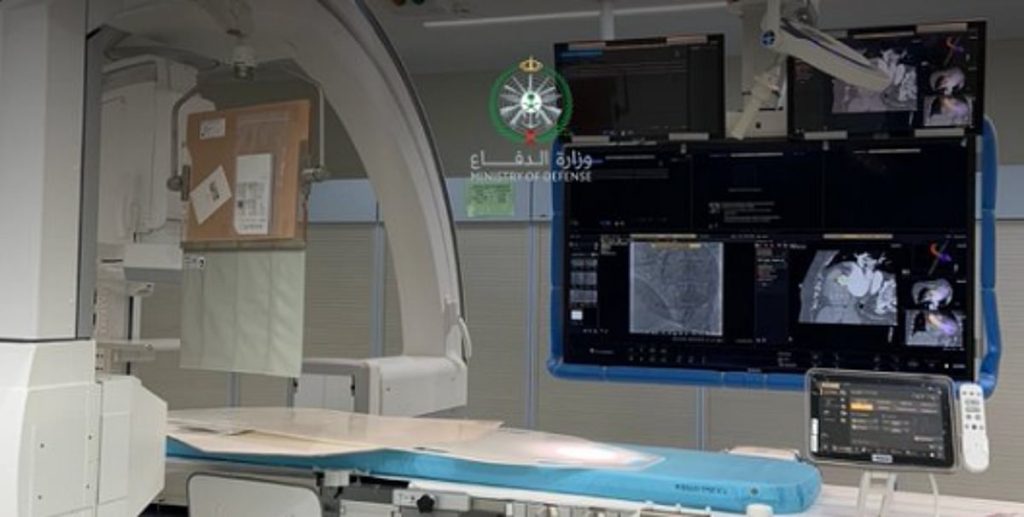 كما زودت وحدة الأشعة التداخلية بجهاز Artis icono Biplane للتصوير الوعائي الرقمي ثنائي المستوى الذي يعد الأول من نوعه على مستوى المستشفيات العسكرية، ويمتاز بقدرته على التصوير المتزامن من زاويتين، وتقليل زمن الإجراء وكمية الصبغة وجرعة الإشعاع، مع أنظمة متقدمة لمعالجة الصور، ما يجعله مثاليا للإجراءات المعقدة، ولاسيما التدخلات العصبية الوعائية وسحب الجلطات الدماغية الحادة، بما يسهم في إنقاذ أنسجة الدماغ، وتحسين فرص التعافي، وتقليل نسب الإعاقة والوفيات.