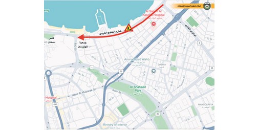 أعلنت الإدارة العامة للمرور عن إغلاق كلي لشارع الخليج العربي من تقاطع الدائري الثاني مع شارع الخليج العربي إلى تقاطع جمعية المهندسين اعتبارا من يوم الخميس الموافق 22 الجاري الساعة 6:00 مساء حتى يوم الأحد الموافق 25 الجاري الساعة 6:00 صباحا، وذلك لاستكمال أعمال الصيانة اللازمة للطريق.