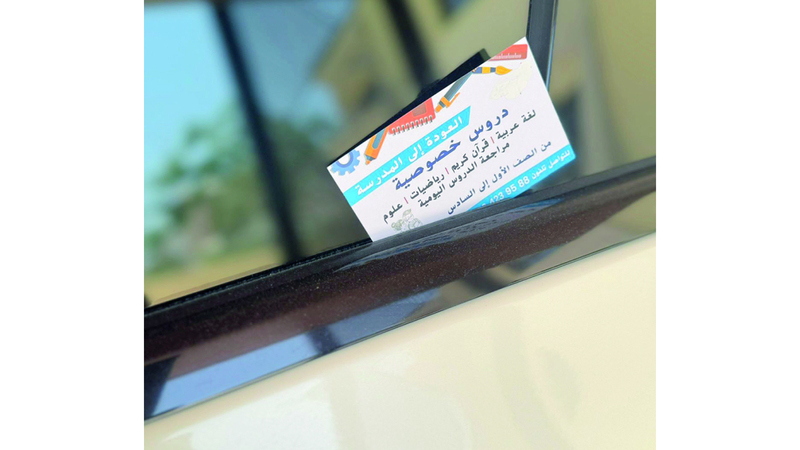 وتفصيلاً، أكد ولي أمر طالب في المرحلة الثانوية، عبدالله محمد الشامسي، أن ابنه عثر على بطاقة دعائية لدروس خصوصية كانت موضوعة على زجاج المركبة، واحتفظ بها بهدف التواصل عند الحاجة، من دون أن يدرك خطورة التعامل مع جهات غير مرخصة.