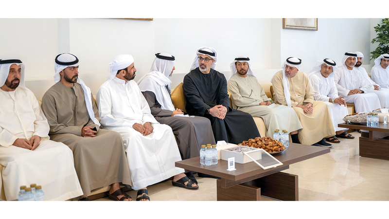 رافق سموّه، خلال تقديم واجب العزاء، الشيخ خليفة بن طحنون بن محمد آل نهيان، رئيس ديوان ولي عهد أبوظبي، والقائد العام لشرطة أبوظبي، اللواء أحمد سيف بن زيتون المهيري.