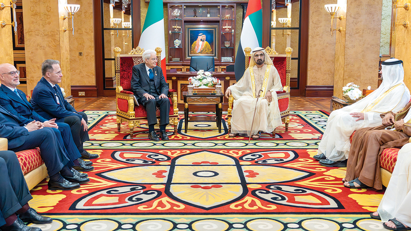 استقبل صاحب السموّ الشيخ محمد بن راشد آل مكتوم، نائب رئيس الدولة رئيس مجلس الوزراء حاكم دبي، رعاه الله، أمس، في قصر زعبيل، رئيس جمهورية إيطاليا، سيرجيو ماتاريلا، الذي يقوم بزيارة رسمية إلى دولة الإمارات، وذلك في إطار حرص الجانبين على تعزيز العلاقات الثنائية، وتوسيع آفاق التعاون المشترك بين البلدين الصديقين.