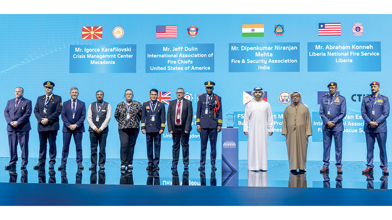 وكرّم سمو الشيخ منصور بن محمد بن راشد آل مكتوم ثلاث منظمات فائزة بـ«جائزة الأثر العالمي للسلامة المجتمعية»، تقديراً لإسهاماتها في تدريب وتوعية المجتمعات ضمن المبادرة، خلال عام 2025، وشمل التكريم منظمة CTIF، ومنظمة Fire Aid، ومنظمة NFPA.