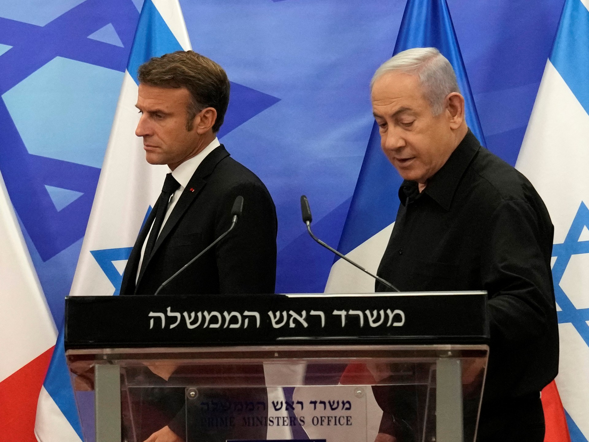 وأورد بيان للخارجية الإسرائيلية أنه “ما دامت فرنسا تواصل مبادرتها وجهودها التي تتنافى ومصالح إسرائيل، فإن زيارة ماكرون لا مجال للقيام بها”.