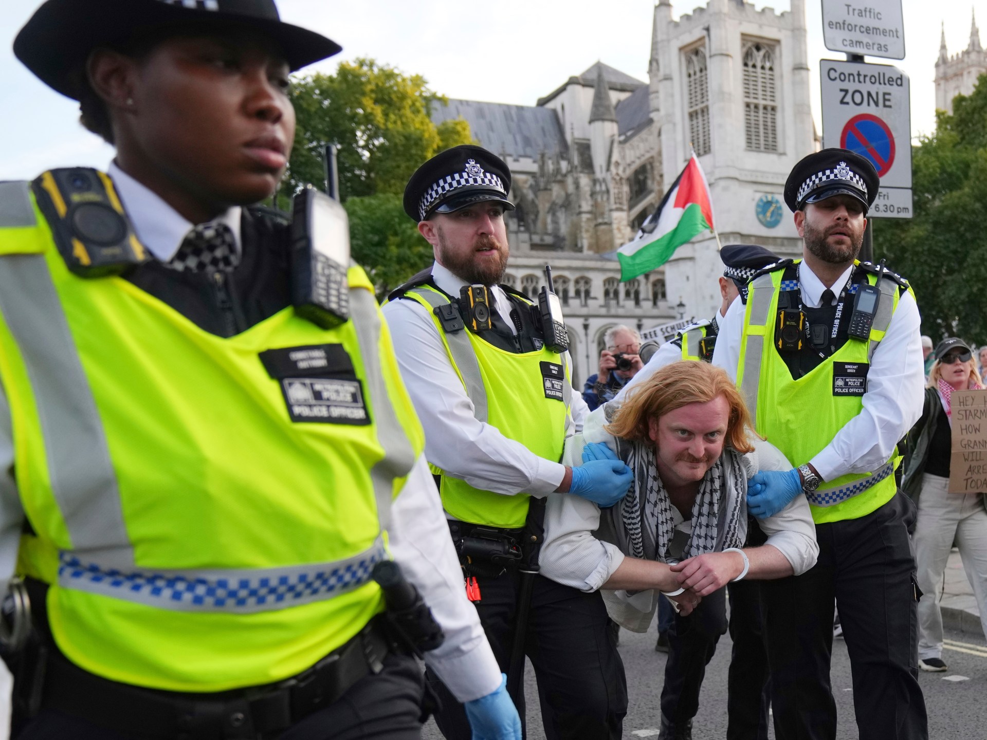 وجاء ذلك عقب تحذير الشرطة الجمعة من أنها لن تتردد في اعتقال أي متظاهر يعرب صراحة عن دعمه للحركة. وقالت شرطة لندن -في بيان نشرته اليوم الأحد- إنها أوقفت 890 شخصا، من بينهم 857 بسبب دعم الحركة و33 آخرين بسبب مخالفات منهم 17 بتهمة العنف ضد الشرطة.