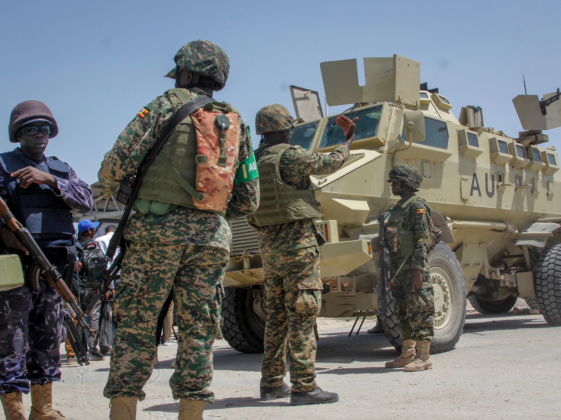 وينتشر في البلاد أكثر من 10 آلاف جندي من قوات الاتحاد الإفريقي، ورغم ذلك تستمر هجمات حركة الشباب. وفي نهاية يونيو/حزيران قُتل ما لا يقل عن 7 جنود أوغنديين في اشتباكات مع حركة الشباب في مدينة بمنطقة شبيلي السفلى.