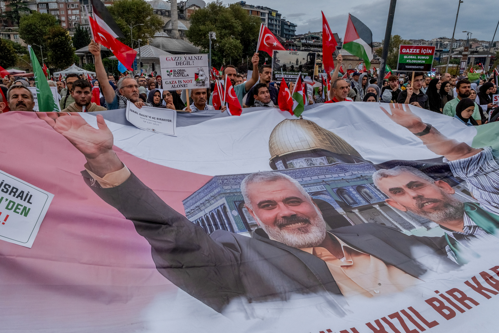 تظاهر الآلاف في ميدان أوسكودار في الجزء الآسيوي من مدينة إسطنبول التركية دعما لأسطول الصمود المتجه لكسر الحصار المفروض على قطاع غزة.