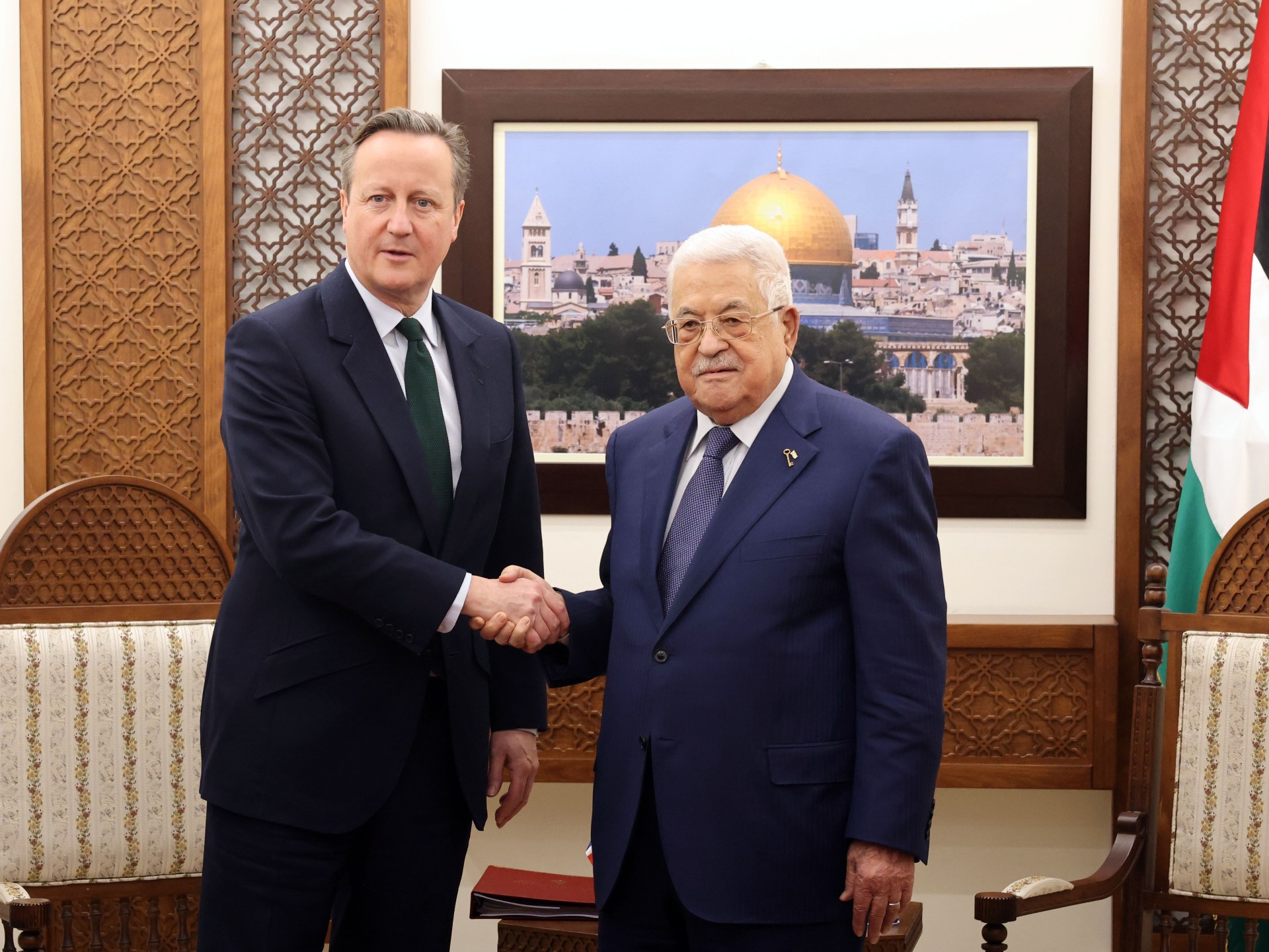 قال وزير الخارجية البريطاني ديفيد كاميرون إنه عرض -خلال لقائه الرئيس الفلسطيني محمود عباس– خطة للانتقال من هدنة مؤقتة لإدخال المساعدات وإطلاق سراح المحتجزين، إلى وقف دائم لإطلاق النار في قطاع غزة.