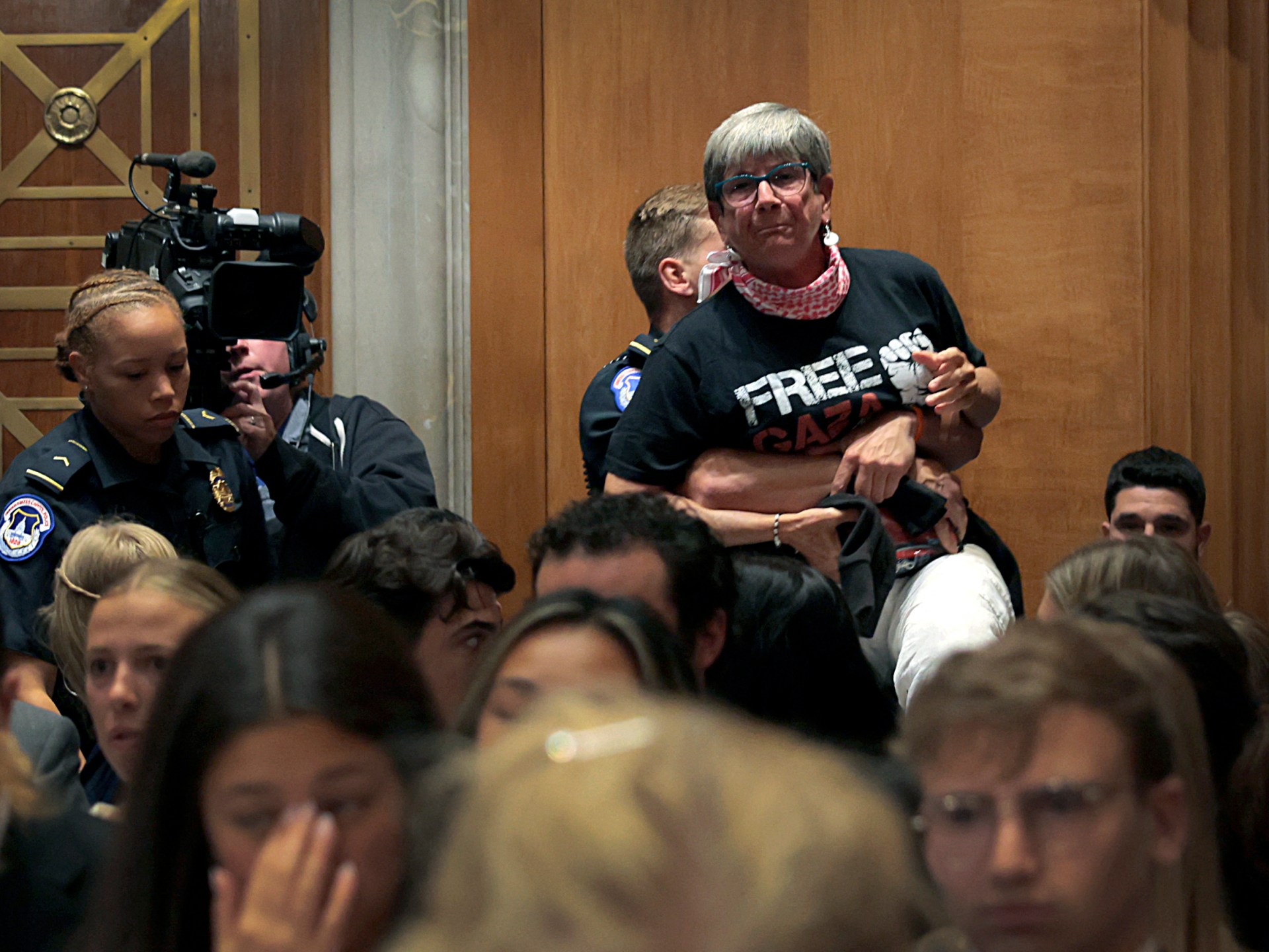 وقاطع محتجون روبيو وهو يتحدث، وهتفوا “أوقفوا الإبادة الجماعية” (في غزة)، و”عاقبوا إسرائيل”، وذلك قبل أن تخرجهم الشرطة من القاعة.