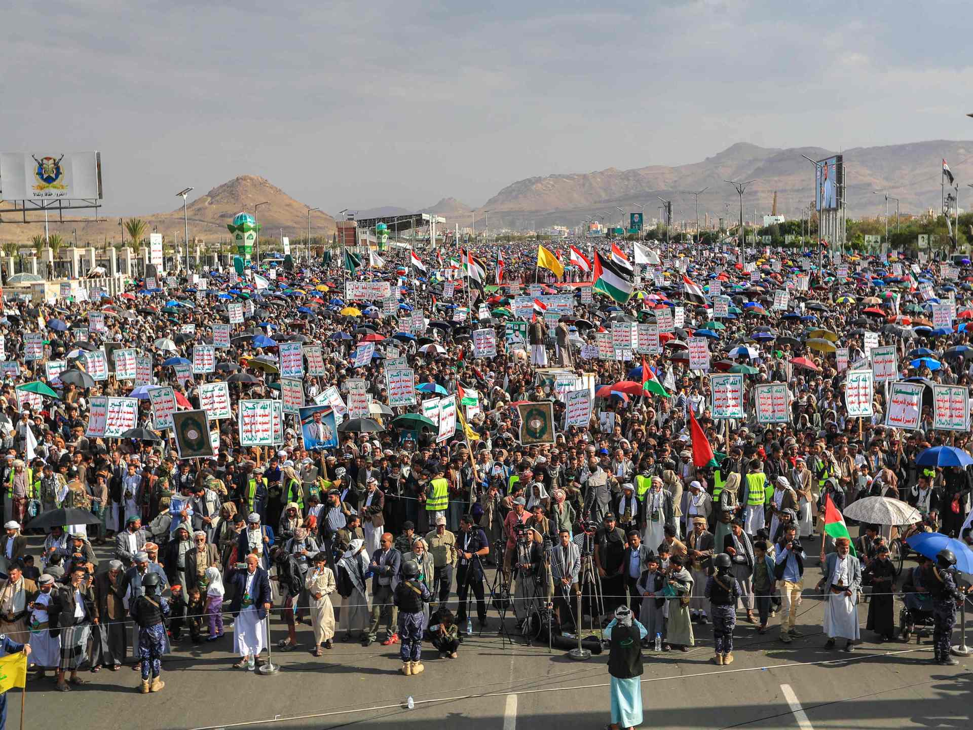ففي اليمن، تظاهر عشرات الآلاف في مئات الساحات بمحافظات تسيطر عليها جماعة الحوثي، أبرزها العاصمة صنعاء، والحديدة (235 ساحة) وصعدة (36 ساحة)، بحسب ما نقلته قناة المسيرة التابعة للجماعة.