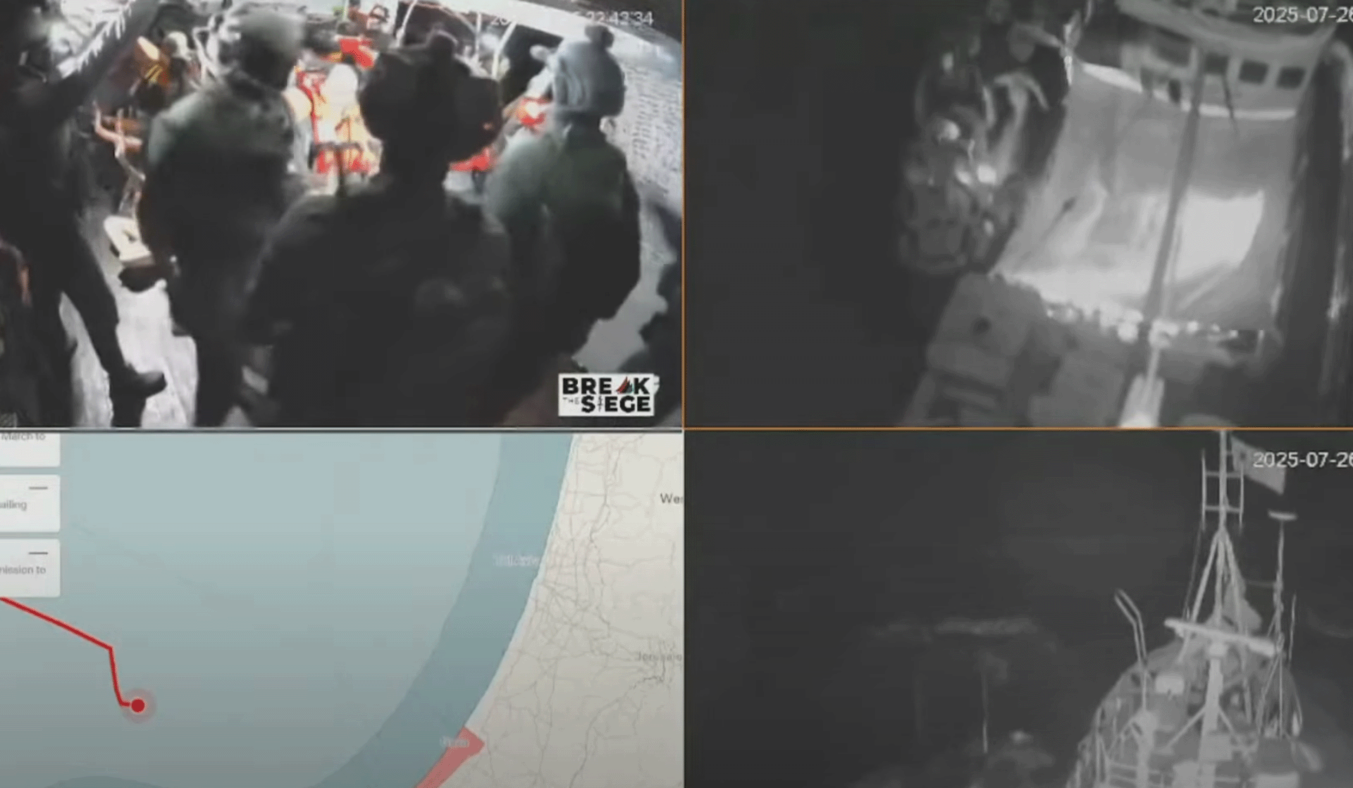 وأظهرت صور اقتحامَ جنود إسرائيليين السفينة التي تقل نشاطين يسعون لكسر الحصار عن غزة.