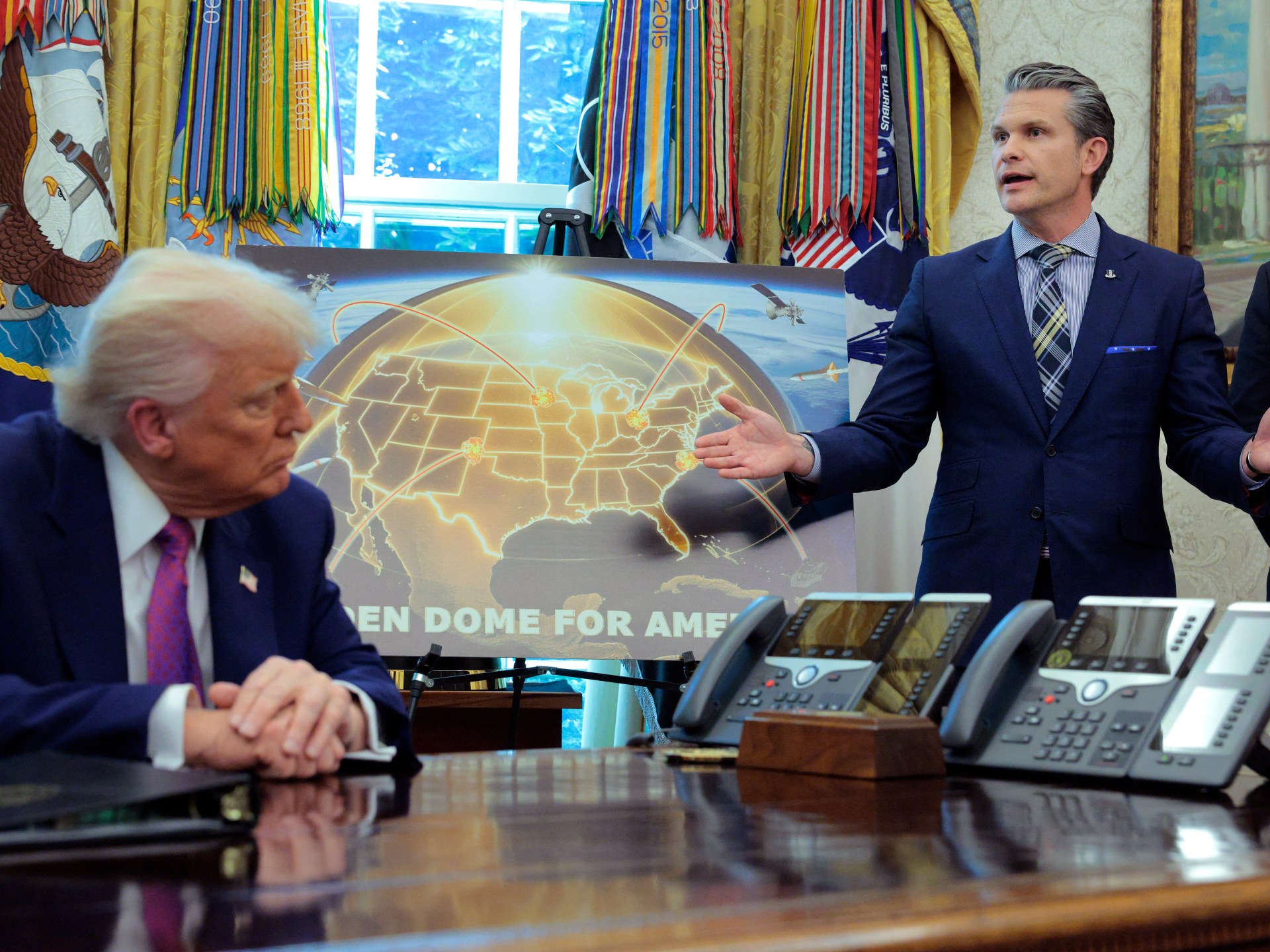 وكان ترامب كشف الأحد الماضي في البيت الأبيض في حضور وزير الدفاع بيت هيغسيث عن خطط لبناء درع صاروخية تحت مسمى القبة الذهبية بهدف حماية الولايات المتحدة من هجمات خارجية.