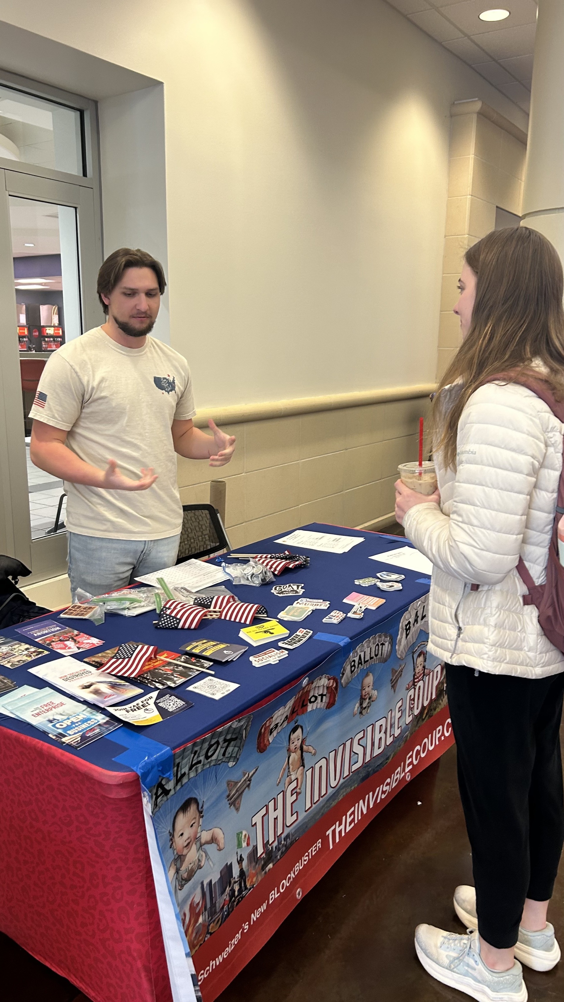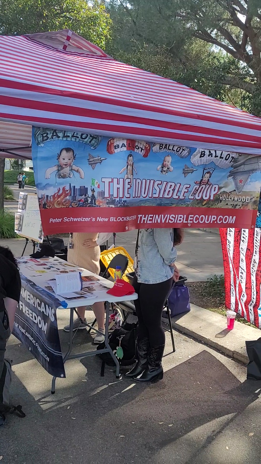 الطلاب في فروع YAF في جامعات أخرى – بما في ذلك جامعة جورجيا، وجامعة جنوب ألاباما، وجامعة كاليفورنيا، وجامعة كاليفورنيا في إيرفين، وجامعة سنترال فلوريدا – يستضيفون فعاليات طاولة مستوحاة من الانقلاب غير المرئي.