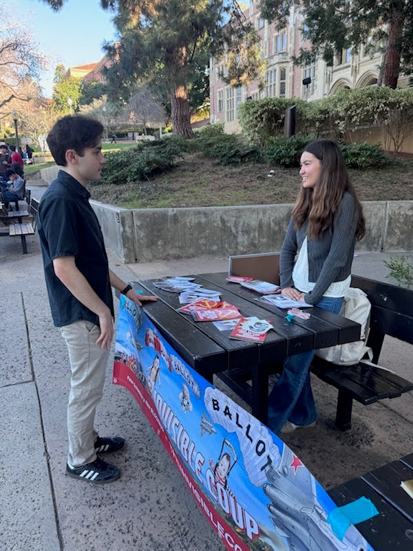 الطلاب من فرع الشباب الأمريكيين من أجل الحرية (YAF) في جامعة كاليفورنيا في لوس أنجلوس، كاليفورنيا، يعقدون اجتماعًا في الحرم الجامعي لمناقشة كتاب بيتر شفايتزر “الانقلاب الخفي”. (الصورة مقدمة من جامعة كاليفورنيا/ YAF)
