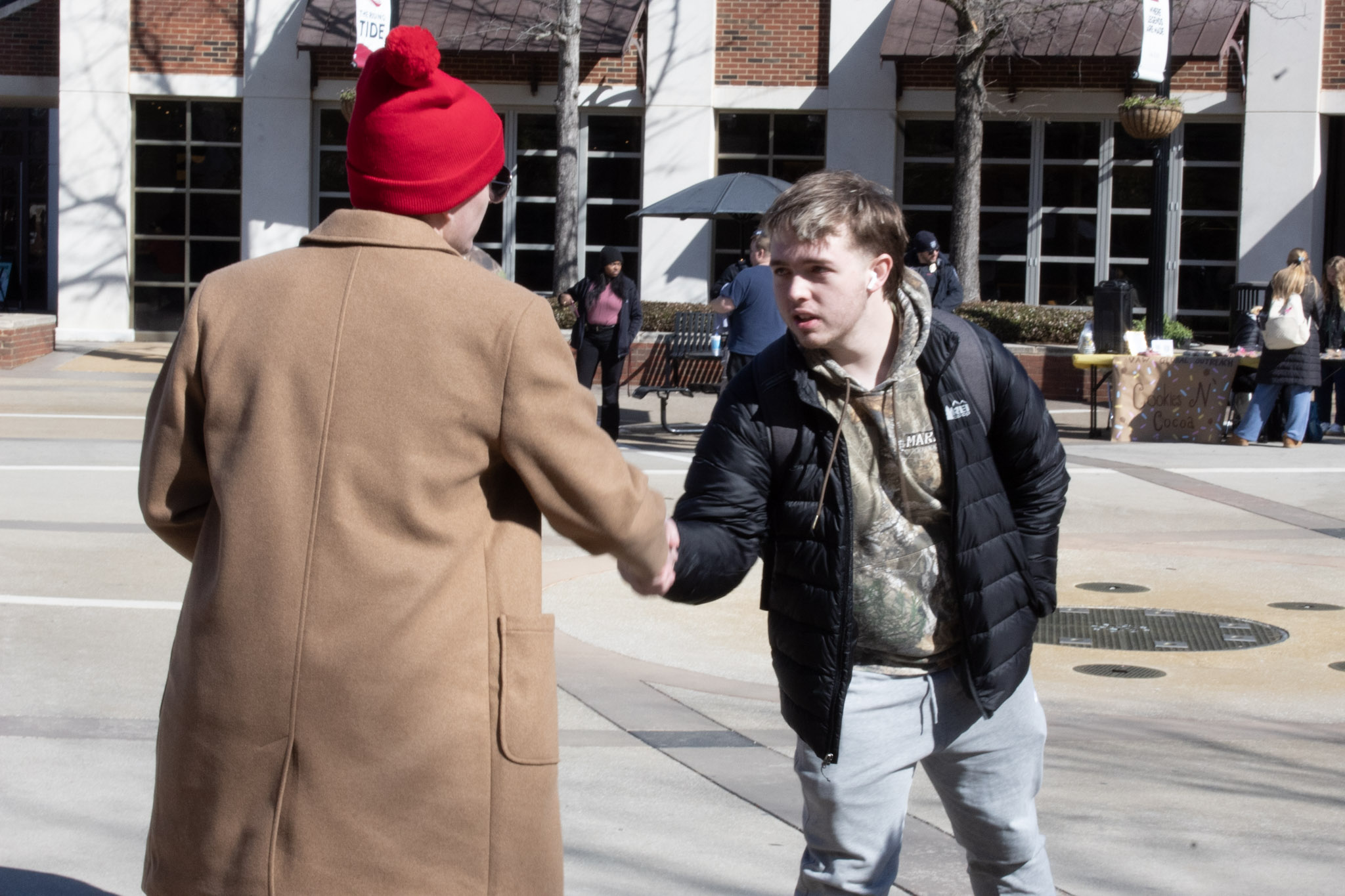 وقال بوفينبارجر إن معظم الطلاب في حرم جامعة ألاباما كانوا على استعداد للاستماع أو إجراء محادثة، ولكن كانت هناك بعض الاضطرابات الملحوظة. أدى أحدهما إلى احتجاز طالبة “لأنها صعدت إلى طاولتنا، وأمسكت بمجموعة من الأغراض، وألقتها بعيدًا”.