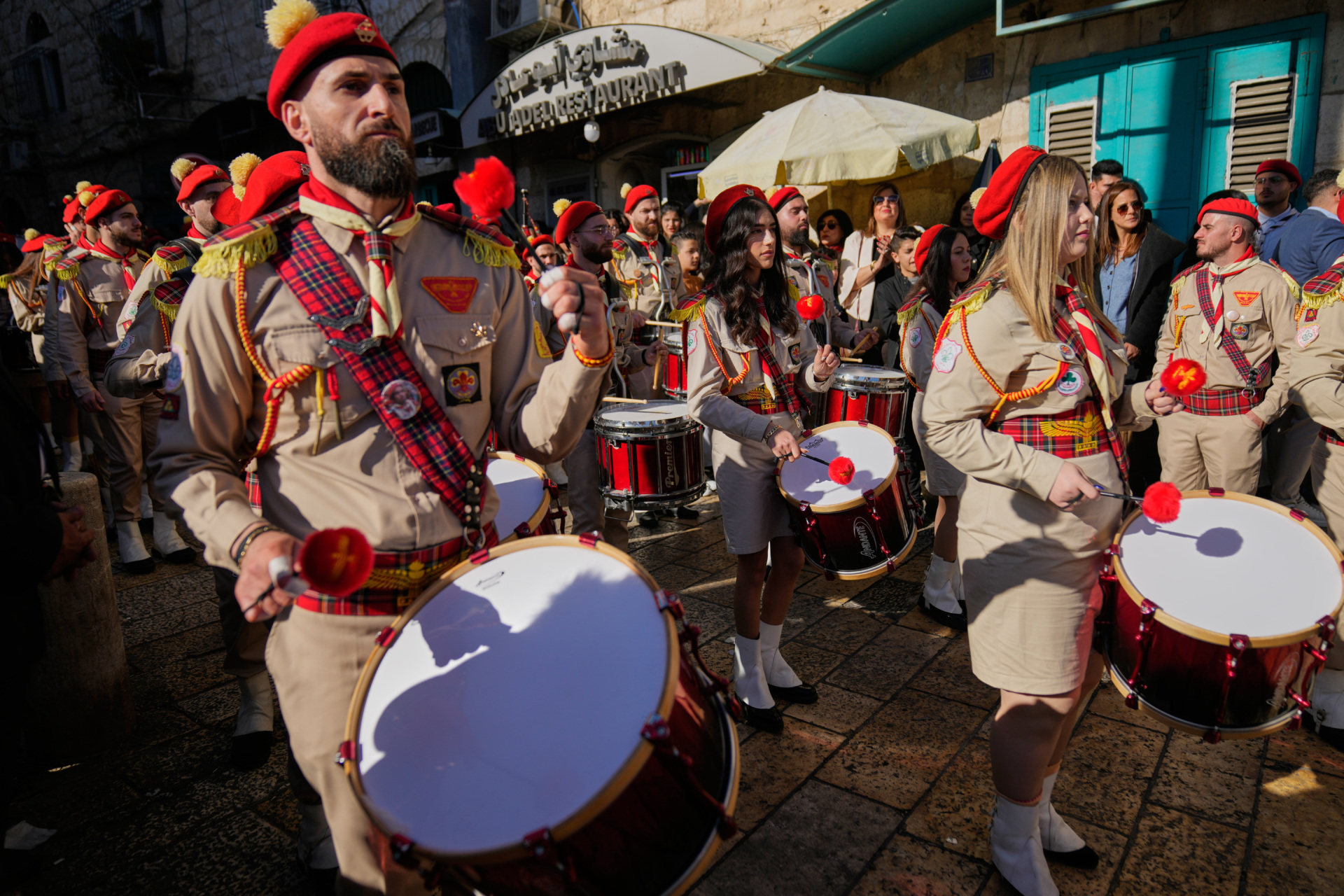وقالت إيرين كيرميز، التي نشأت في بيت لحم وتعيش في رام الله، إن العرض الكشفي هو من بين تقاليدها المفضلة في عيد الميلاد. ابنتها البالغة من العمر 15 عامًا تعزف على الطبول مع كشافة رام الله.