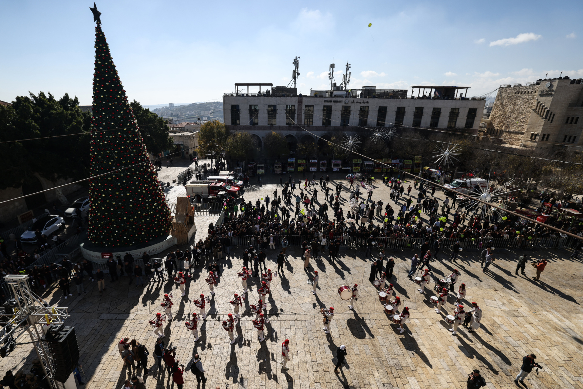 وكانت المدينة التي ولد فيها يسوع قد ألغت احتفالات عيد الميلاد على مدى العامين الماضيين. وبدلاً من ذلك، ظهرت في ساحة المهد مشهد ميلاد الطفل يسوع محاطًا بالركام والأسلاك الشائكة تكريمًا للوضع في غزة.