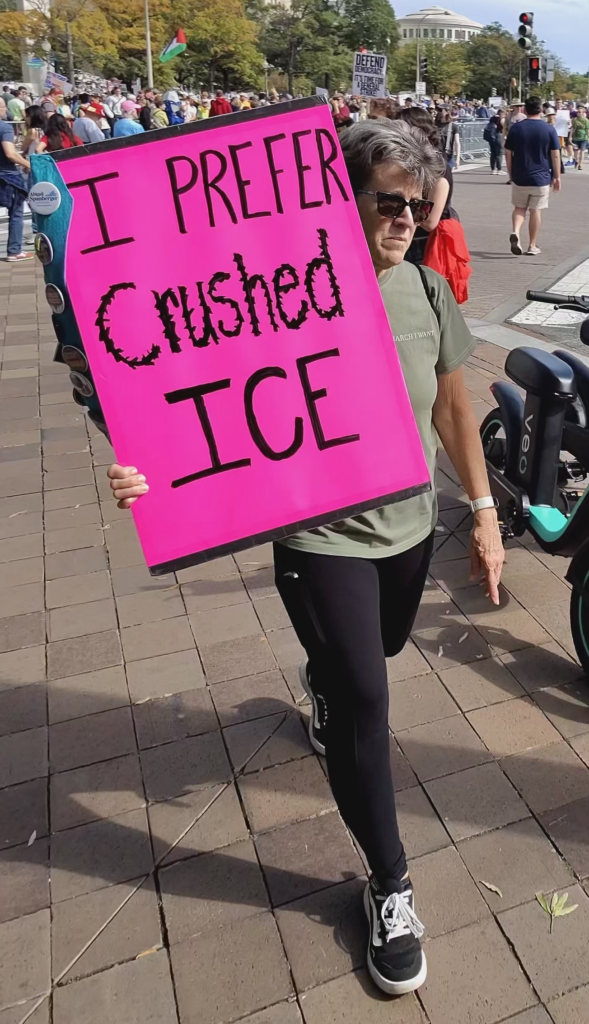 ناشط يساري في طريقه لحضور احتجاج “لا ملوك” في واشنطن العاصمة، يوم السبت 18 أكتوبر 2025. (ماثيو بيردي / بريتبارت نيوز)