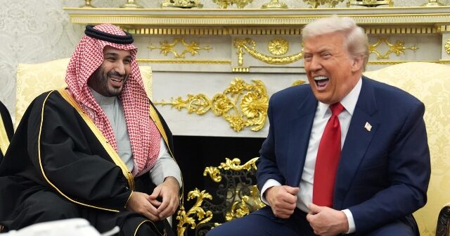 التقى ترامب مع محمد بن سلمان في وقت سابق من يوم الثلاثاء، حيث أعلن العاهل السعودي المستقبلي أن بلاده ستستثمر تريليون دولار في الولايات المتحدة.