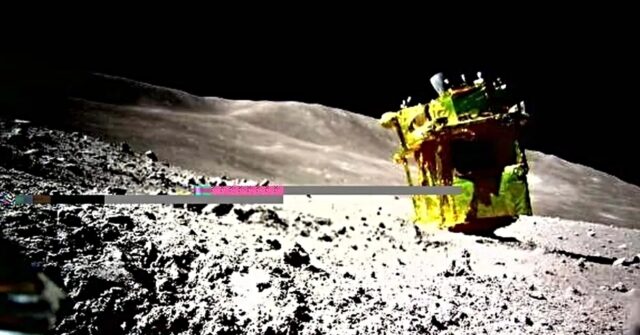 أظهرت الصور التي صدرت يوم الخميس أن مركبة الهبوط القمرية اليابانية انتهى بها الأمر بالوقوف على مقدمتها ومحركاتها موجهة للأعلى نحو السماء الملبدة بالغيوم بعد هبوطها على سطح القمر.