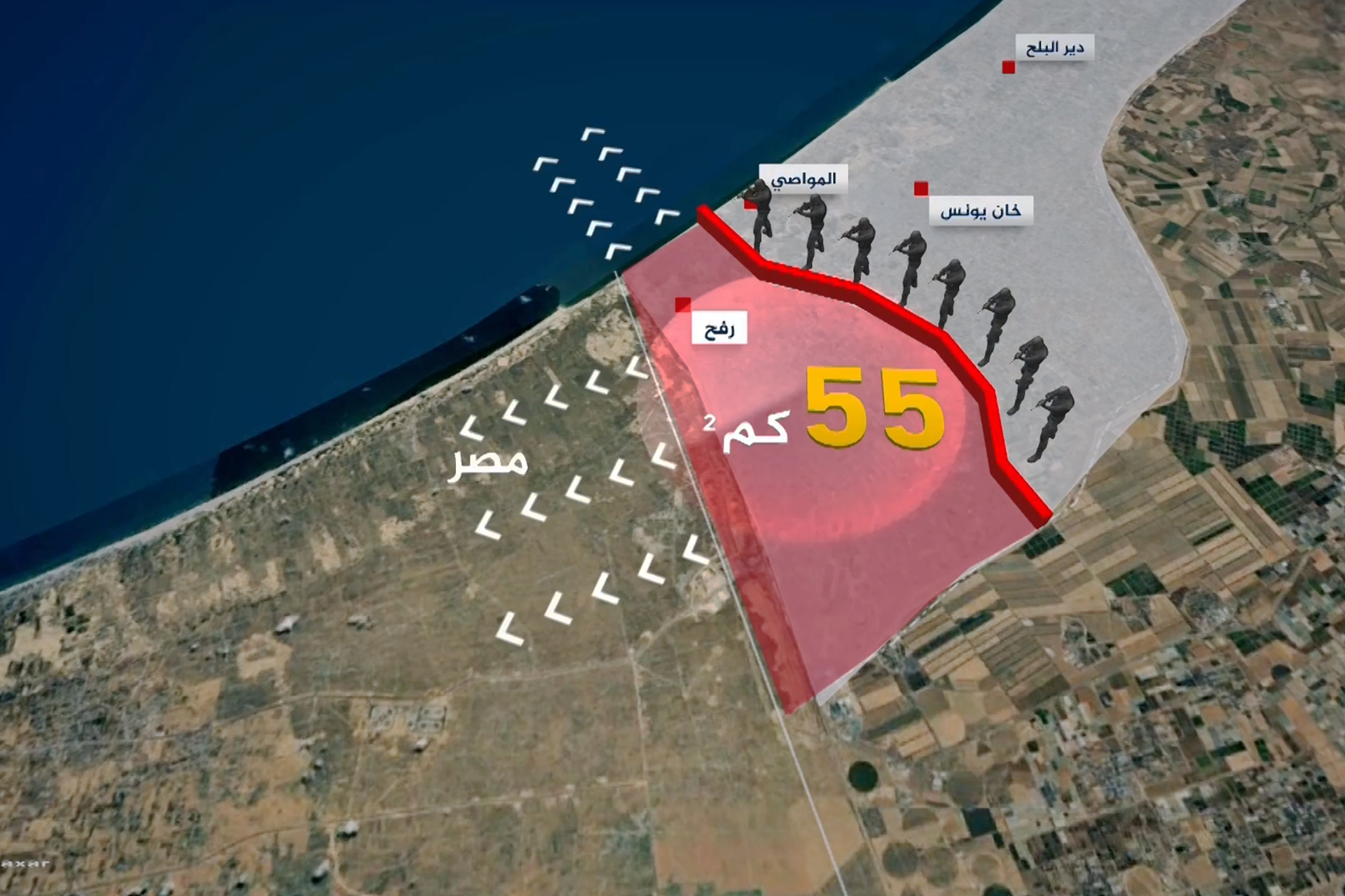 وهذه الخطة كشف عنها وزير الدفاع الإسرائيلي يسرائيل كاتس، موضحا أنها تقوم على إنشاء منطقة مغلقة بمدينة رفح بين محوري موراغ وفيلادلفيا جنوبي القطاع، وتستهدف بداية نقل نحو 600 ألف فلسطيني إليها، مع إقامة 4 مراكز لتوزيع المساعدات وتديرها منظمات دولية، وسيخضع السكان لعمليات تدقيق أمنية بهدف التأكد من عدم انتمائهم لحركة حماس، وبمجرد دخولهم المنطقة لن يُسمح لهم بالمغادرة.