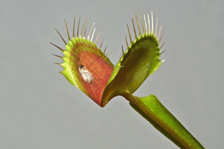 ويضيف “بمجرد إغلاق المصيدة، تبدأ عملية الهضم، حيث تعمل الأوراق كمعدة خارجية تحلل وتمتص المواد الغذائية التي تحملها تلك الفريسة. عندما تنفتح مرة أخرى بعد بضعة أيام، لا يتبقى سوى القشرة الجافة لهيكلها الخارجي”.