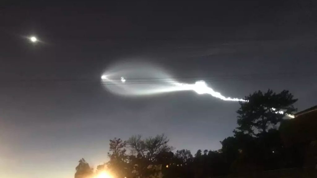 وظن البعض أن هذا هو الصاروخ نفسه، غير أنه تأثير يتعلق بغاز العادم الخارج من محركات الصاروخ في طبقات الجو العليا.