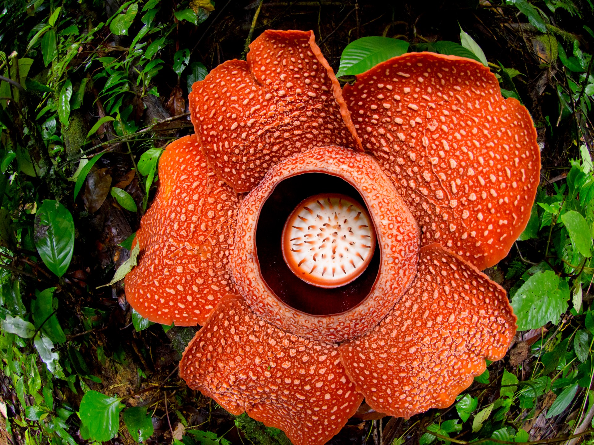 إنها زهرة رافليسيا أرنولدي، المعروفة باسم “زهرة الجثة”، وتُسمى أحيانا “زهرة الوحش”، وهي نبات طفيلي عملاق حيّر العلماء منذ اكتشافه، يستغرق نموه من البذرة إلى الزهرة سنوات، ويقضي معظم حياته الطويلة مختبئا في أرض الغابة، وعندما ينضج أخيرا ينفجر ليصبح أكبر زهرة في العالم.