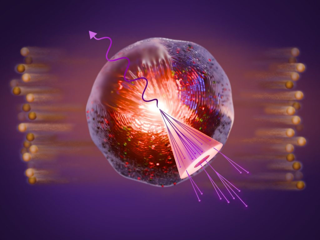 في مصادم الأيونات الثقيلة النسبية في مختبر بروكهافن بالولايات المتحدة، يتم تسريع نوى الذهب إلى سرعات قريبة من سرعة الضوء، ثم تُصطدم ببعضها بعضا، مما يؤدي إلى “ذوبان” النوى وتحرير الكواركات والغلونات، وهي جسيمات دون ذرية من مكونات النواة.