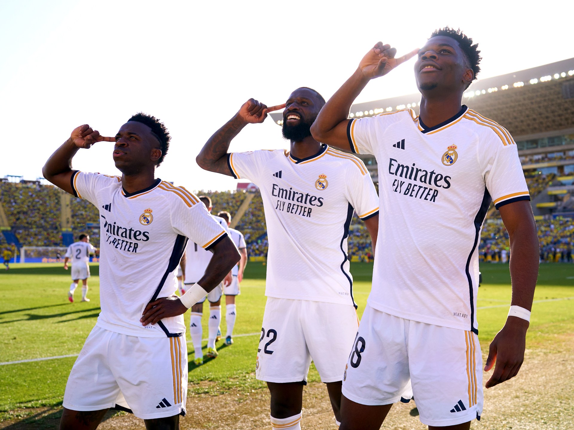 حل أوريلين تشواميني بديلا ليسجل من ضربة رأس قبل نهاية الشوط الثاني، ليقلب ريال مدريد تأخره بهدف إلى انتصار 2-1 على لاس بالماس في الدوري الإسباني لكرة القدم اليوم السبت في أحدث “ريمونتادا” للنادي الملكي.