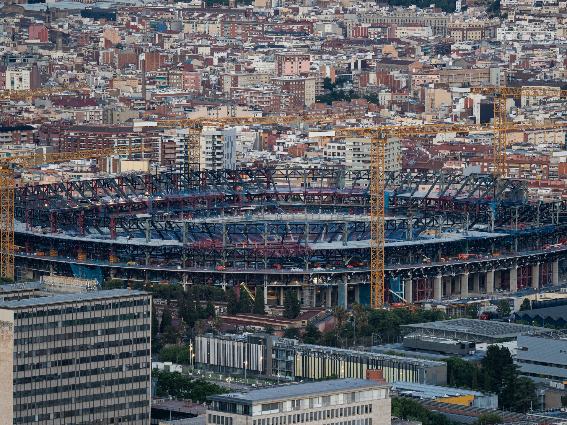 وبدأت أعمال إعادة الإعمار في ملعب كامب نو في يونيو/حزيران 2023، على الرغم من أن بعض أعمال الهدم بدأت في أواخر عام 2022، وتم تأجيل موعد العودة مرات عدة، وأبرزها بعد أن اضطر النادي إلى التراجع عن خوض مباراة كأس جوان غامبر على أرضه في 10 أغسطس/آب المقبل.