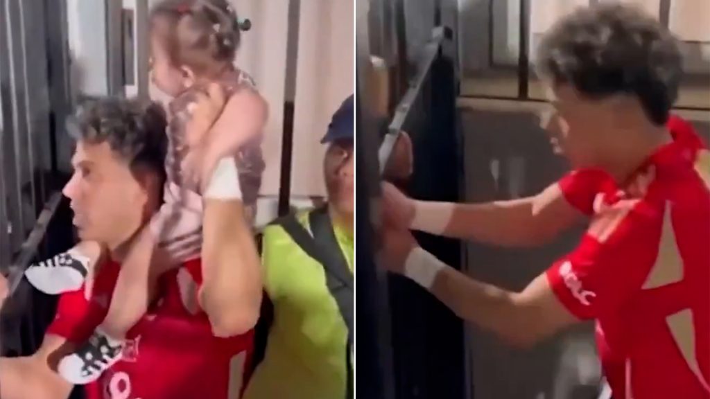 وأظهر مقطع فيديو منع رجل الأمن عاشور دخول أرضية الملعب بعد اصطحاب طفلته من المدرجات، ليدخل في مشادة معه قبل أن يدفع الباب الحديدي بقوة ويتمكن من دخول المستطيل الأخضر.