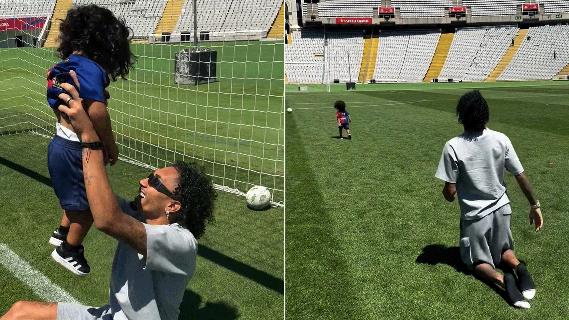 وقطع الدولي البرازيلي ملعب “مونتجويك” المعقل المؤقت للفريق الكتالوني مشيا على ركبتيه بعد أن ظفر البرسا بالثلاثية المحلية.